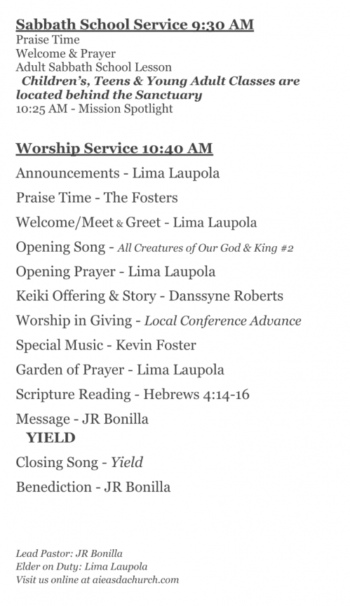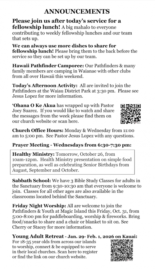MAHALO to everyone that helps setup and prepare for a great time & meal together each week for potluck!